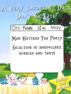 Next week's Theme Day Menu - Thursday 12th May 2016 - Mad Hatters Tea Party - Selection of Sandwiches, Nibbles and Tarts